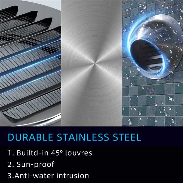 Hình dạng của máy hút mùi cũng như các thanh nhô xuống phía dưới ngăn nước mưa và quá nhiều gió lọt vào hệ thống thông gió, phù hợp với các ứng dụng quạt hút như máy sấy, phòng tắm hoặc thông gió nhà bếp.