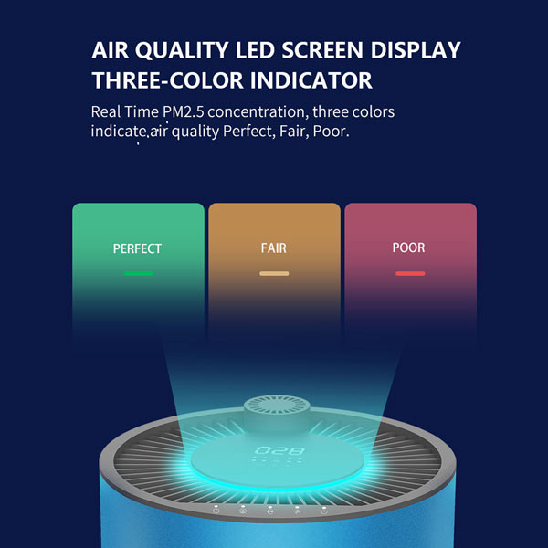 Màn hình Led hiển thị ba chỉ báo màu,theo dõi chất lượng không khí và nồng độ bụi PM2.5 theo thời gian thực.